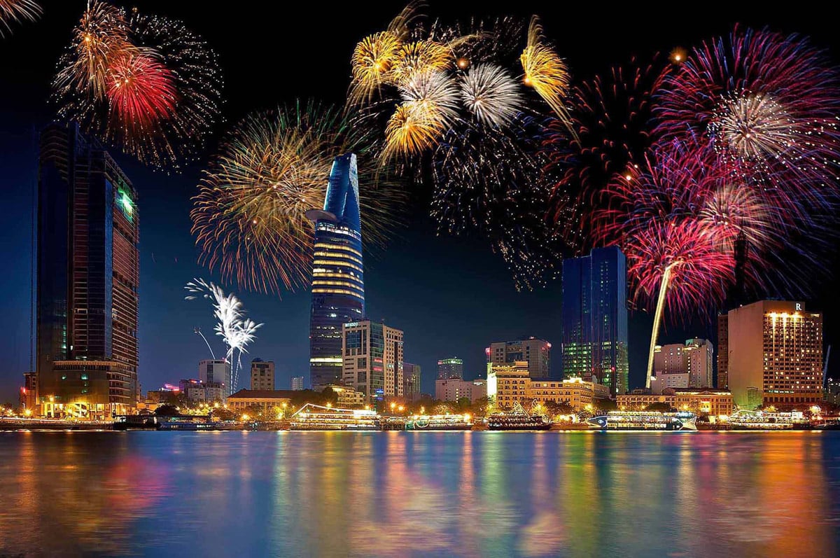 Pháo hoa giao thừa đón năm mới.