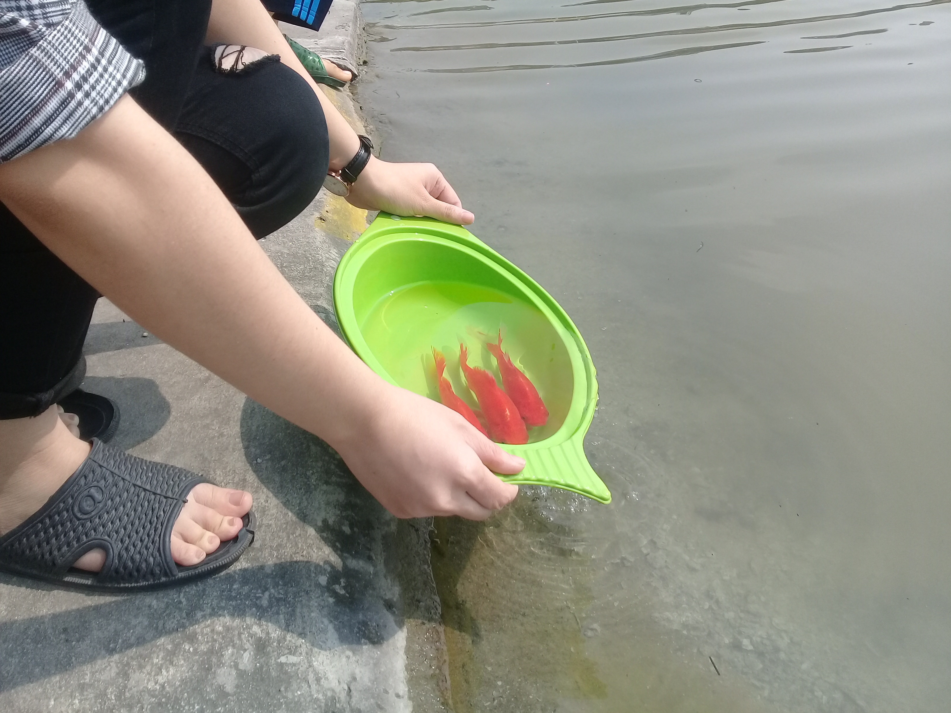 | Người dân đã tự giác bỏ túi nilon sau khi thả cá đúng nơi quy định |