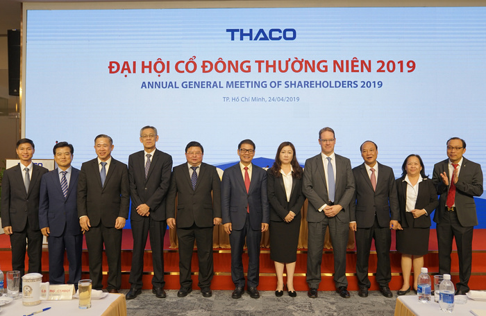 Chiều 24/4, Đại hội cổ đông thường niên năm 2019 của Thaco đã thông qua kết quả hoạt động 2018, kế hoạch năm 2019 và chiến lược phát triển giai đoạn 2019 - 2021; đồng thời bầu ra Hội đồng quản trị và Ban kiểm soát nhiệm kỳ 2019 - 2021.