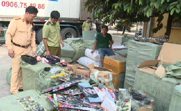 Tại thời điểm kiểm tra, lực lượng công an phát hiện trên xe nhiều hàng hóa gồm: 1.015 kg mỹ phẩm các loại, 455 kg đồ chơi bạo lực trẻ em, 75 kg đồ chơi kích dục… tất cả số hàng hóa trên, đều do Trung Quốc sản xuất. Tài xế không xuất trình được giấy tờ chứng minh nguồn gốc hợp pháp.