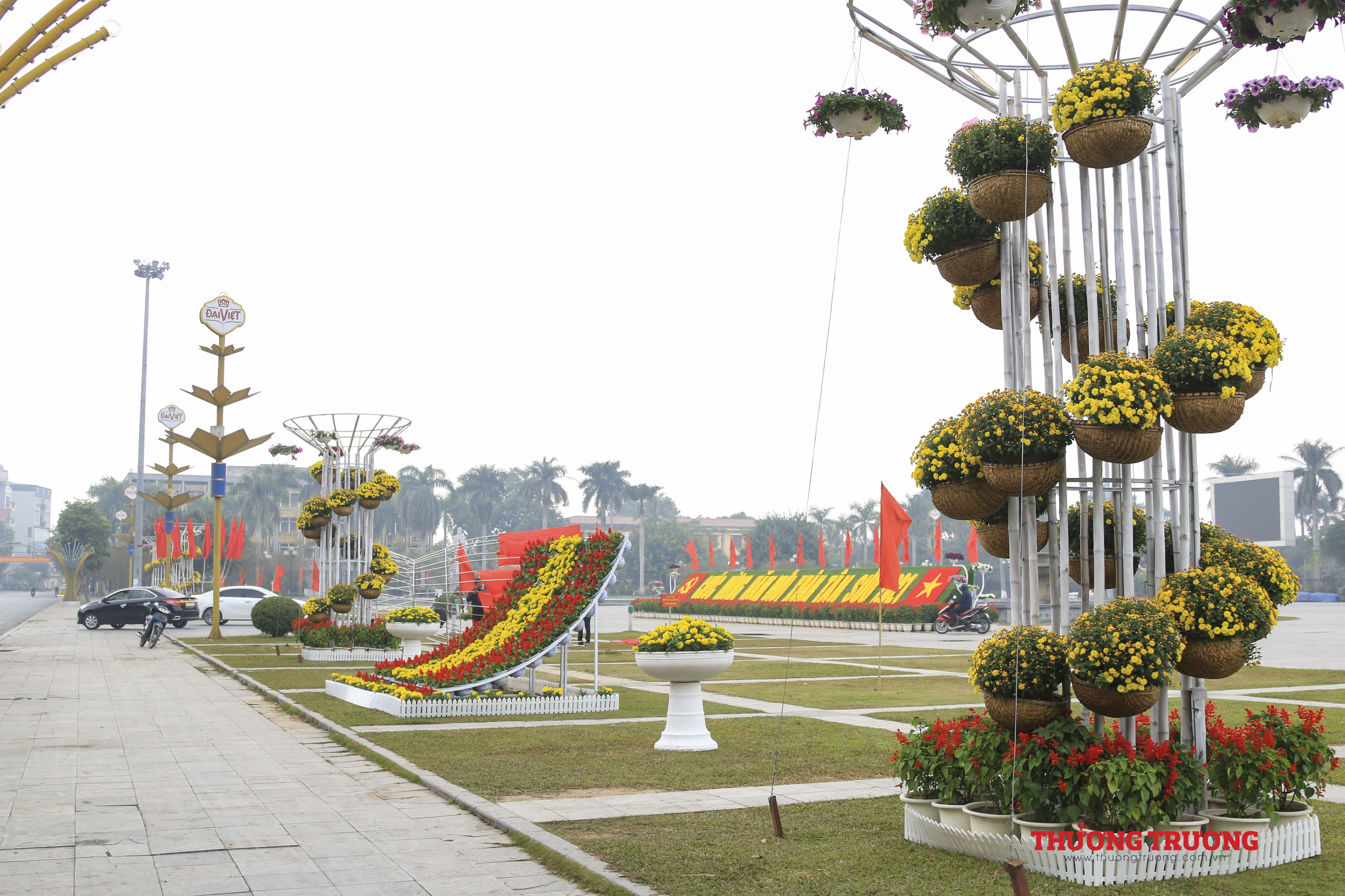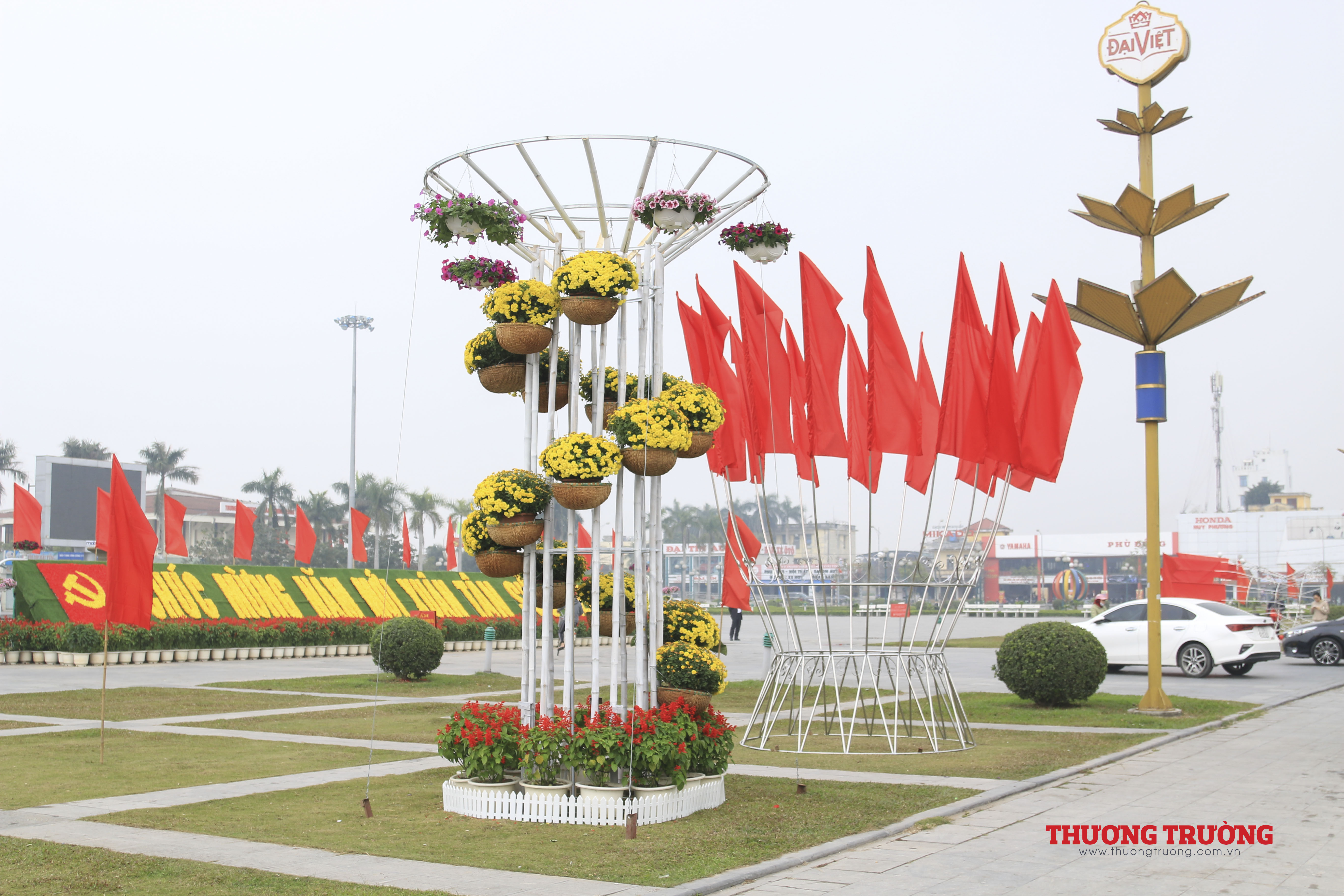 Hoa trang trí rực rỡ khoe sắc thắm mang đến diện mạo tươi mới, tạo không khí phấn khởi chào mừng Đại hội lần thứ XIII của Đảng.