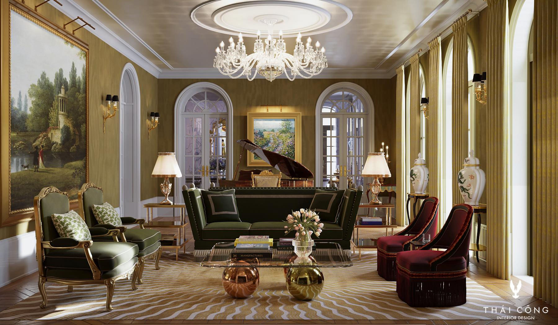 “Phối cảnh 3D phòng khách công trình Di Băng Villa - dự án do Thái Công thiết kế toàn bộ kiến trúc và nội thất, bộ phận xây dựng và phía bên nhà thầu hiện vẫn đang trong quá trình hoàn thiện”, Thái Công nói.