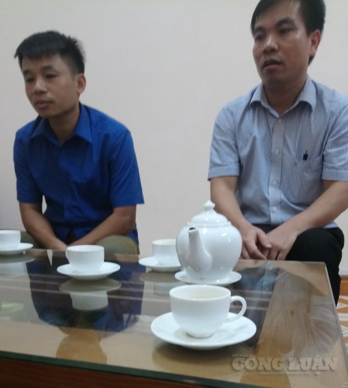 Hai PGĐ Ban QLDA ĐT XD huyện Phú Lương là ông Nguyễn Trọng Hải (áo xanh) và Nguyễn Xuân Vũ đang trao đổi với PV