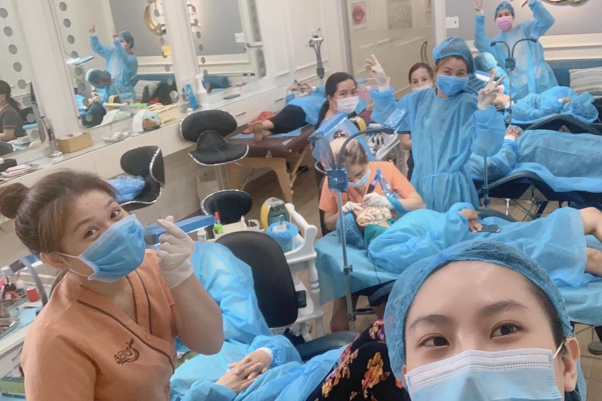 Hình ảnh học viên học phun xăm tại Thẩm mỹ viện MIRA BEAUTY ACADEMY. Ảnh trên website https://thammyvienmira.com