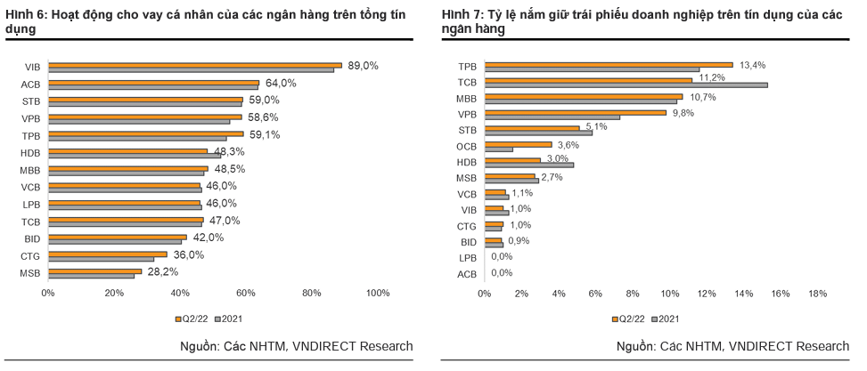Để vượt qua khó khăn nói trên, hầu hết các ngân hàng đã đẩy mạnh hoạt động cho vay bán lẻ kể từ quý 2/2022 để cân bằng rủi ro chất lượng tín dụng/tài sản và tối ưu NIM; điển hình như TCB, MBB, HDB, TPB, VIB...