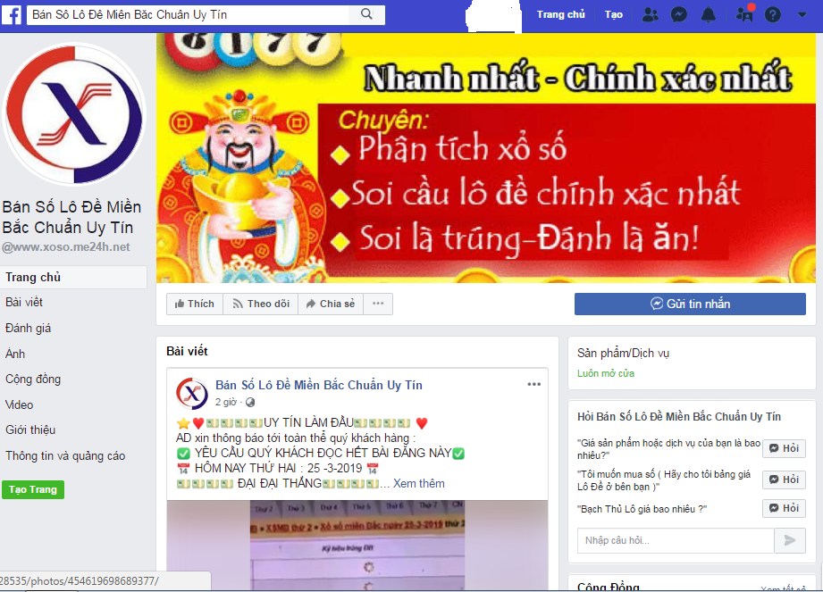| Trang Facebook chuyên bán số lô đề! |