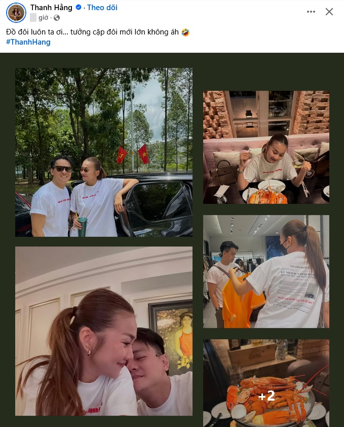 Kể từ khi "về chung một nhà", Thanh Hằng cởi mở, thường xuyên chia sẻ những khoảnh khắc đời thường bên "bạn đời" lên mạng xã hội.