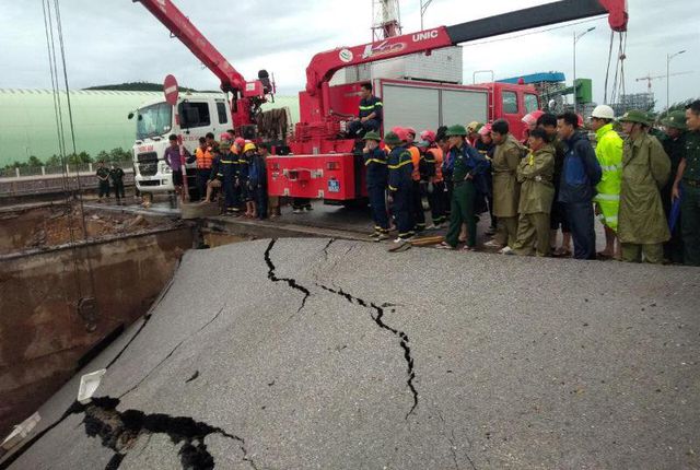Theo đó, vào lúc 3h10 sáng nay 4/7 đã xảy ra một vụ sụt lún mặt đường 513 tại đầu cầu Yên Hòa, thuộc địa phận xã Hải Hà, huyện Tĩnh Gia, Thanh Hóa khiến 5 người đang đi trên 3 xe máy bị mắc kẹt.