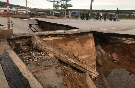 Do ảnh hưởng của bão số 2 tại tỉnh Thanh Hóa xuất hiện mưa lớn , khiến một đoạn đường sụt lún nghiêm trọng, tạo ra một "hố tử thần", vừa xảy ra tại huyện Tĩnh Gia (Thanh Hóa) khiến 2 người chết, 3 người bị thương.