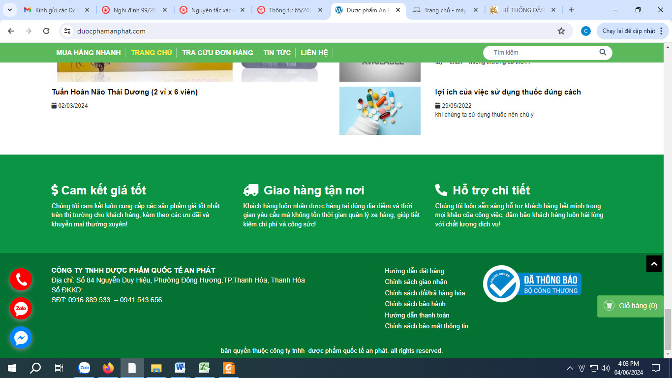Trang Web bán hàng của Công ty TNHH Dược phẩm Quốc Tế An Phát vi phạm các quy định của pháp luật trong hoạt động thương mại điện tử. (hiện tại đã tạm thời khóa tại tên miền: duocphamanphat.com)