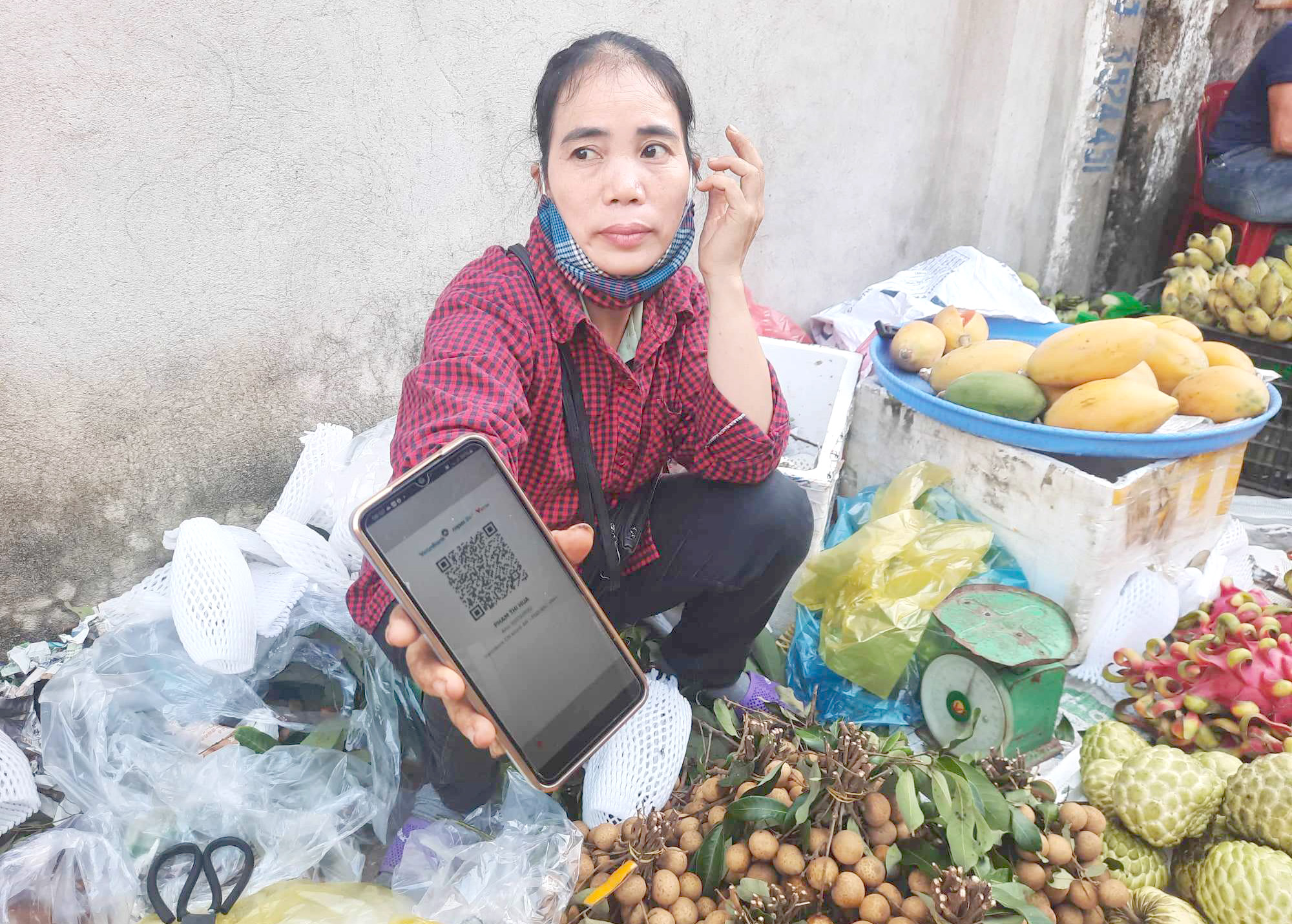 Từ vài năm nay, chị Nguyễn Thị Mai – tiểu thương buôn bán hoa quả tại chợ Quyết (Tp Vinh, Nghệ An) đã tiếp nhận thanh toán qua mã QR với hàng chục lượt khách hàng sử dụng mỗi ngày. Chị Mai, cho biết thường cứ 10 khách tới mua hàng, có đến 6 hoặc 7 người thanh toán điện tử qua mã QR.