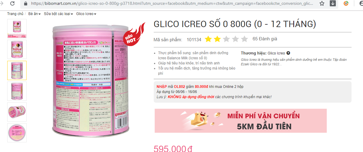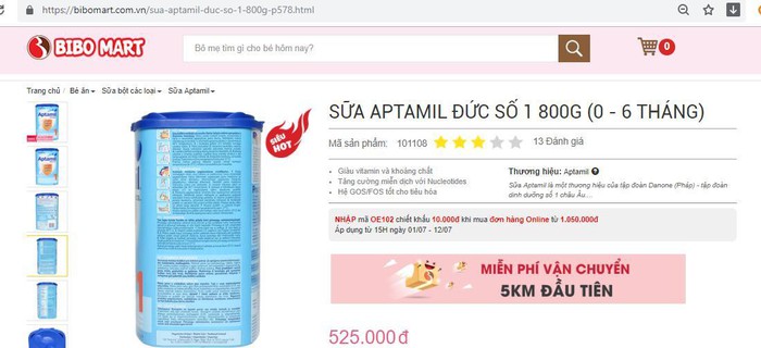 | Chương trình khuyến mãi sữa của Bibomart tại một trang thương mại điện tử (Ảnh - Khỏe 365) |