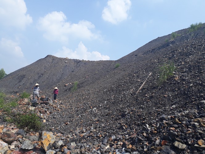 Đất và đá thải chất cao như núi ở khu vực đổ thải tại mỏ Bố Hạ