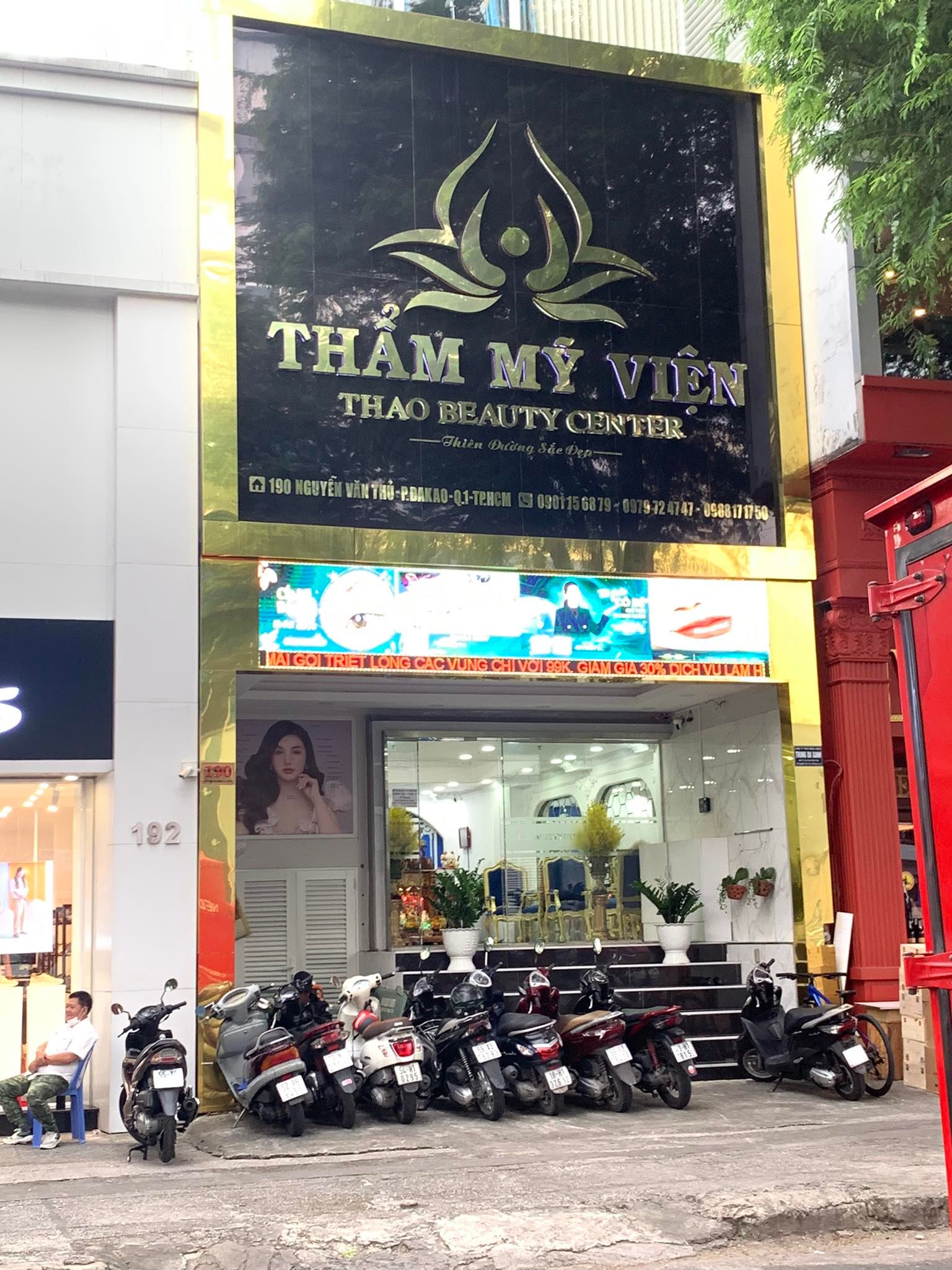 Tại địa chỉ 190 Nguyễn Văn Thủ, phường Đa Kao, quận 1, TP.HCM, là một tòa nhà 5 tầng, trên biển hiệu có ghi “THẨM MỸ VIỆN THẢO BEAUTY CENTER – Thiên đường sắc đẹp” vẫn mở cửa hoạt động.