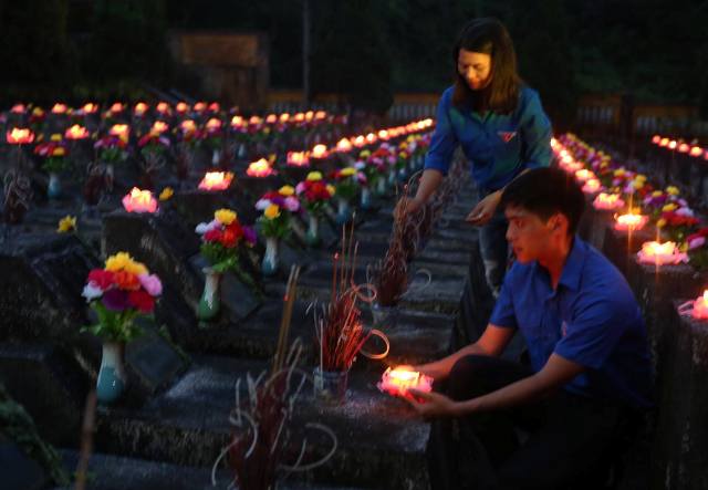 Tại Nghĩa trang liệt sĩ quốc gia Đồi 82 (H.Tân Biên, Tây Ninh), gần 14.000 ngôi mộ liệt sĩ được thắp sáng bằng những nén nhang, ngọn nến tri ân thành kính để khắc ghi công lao của những người anh hùng của dân tộc, những người con đã hi sinh cả cuộc đời mình cho độc lập, tự do của dân tộc.