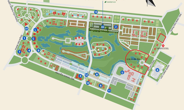 | Vị trí 3 lô đất tại Ciputra khoanh đỏ |
