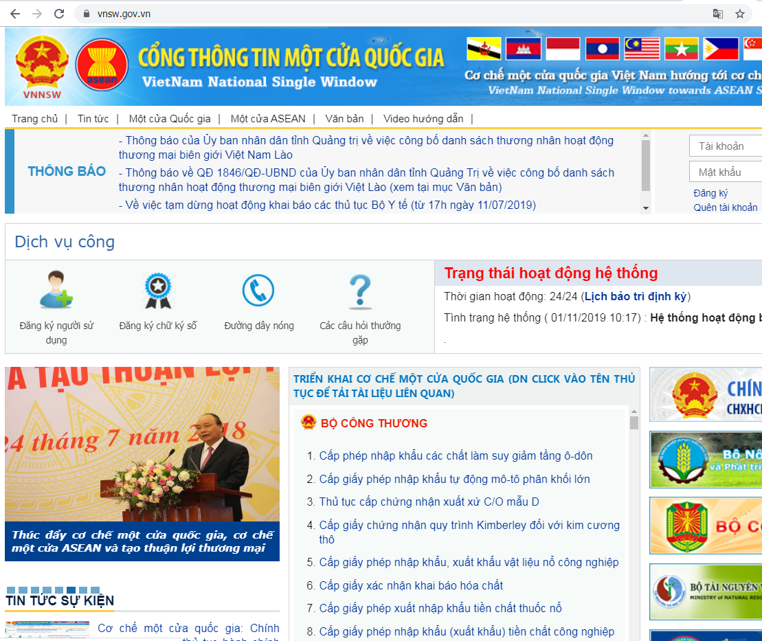 Theo thông báo của Tổng cục Hải quan gửi tới các cục hải quan tỉnh, thành phố, từ ngày 1/11 đến hết 31/12/2019, 4 thủ tục hành chính của Bộ Y tế thuộc lĩnh vực trang thiết bị y tế sẽ được triển khai thí điểm thông qua Cơ chế một cửa quốc gia (NSW).