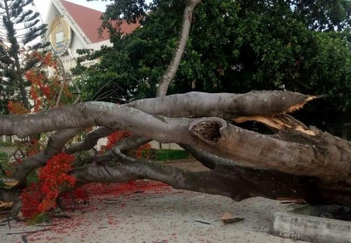 Sáng 28/5, ông Y Khoa Niê Kđăm, Phó hiệu trưởng Trường Cao đẳng Công nghệ Tây Nguyên (TP Buôn Ma Thuột, tỉnh Đắk Lắk) cho biết một cây phượng vĩ cổ thụ đã bật gốc, ngã đổ trong sân trường. Rất may không có thiệt hại về người.