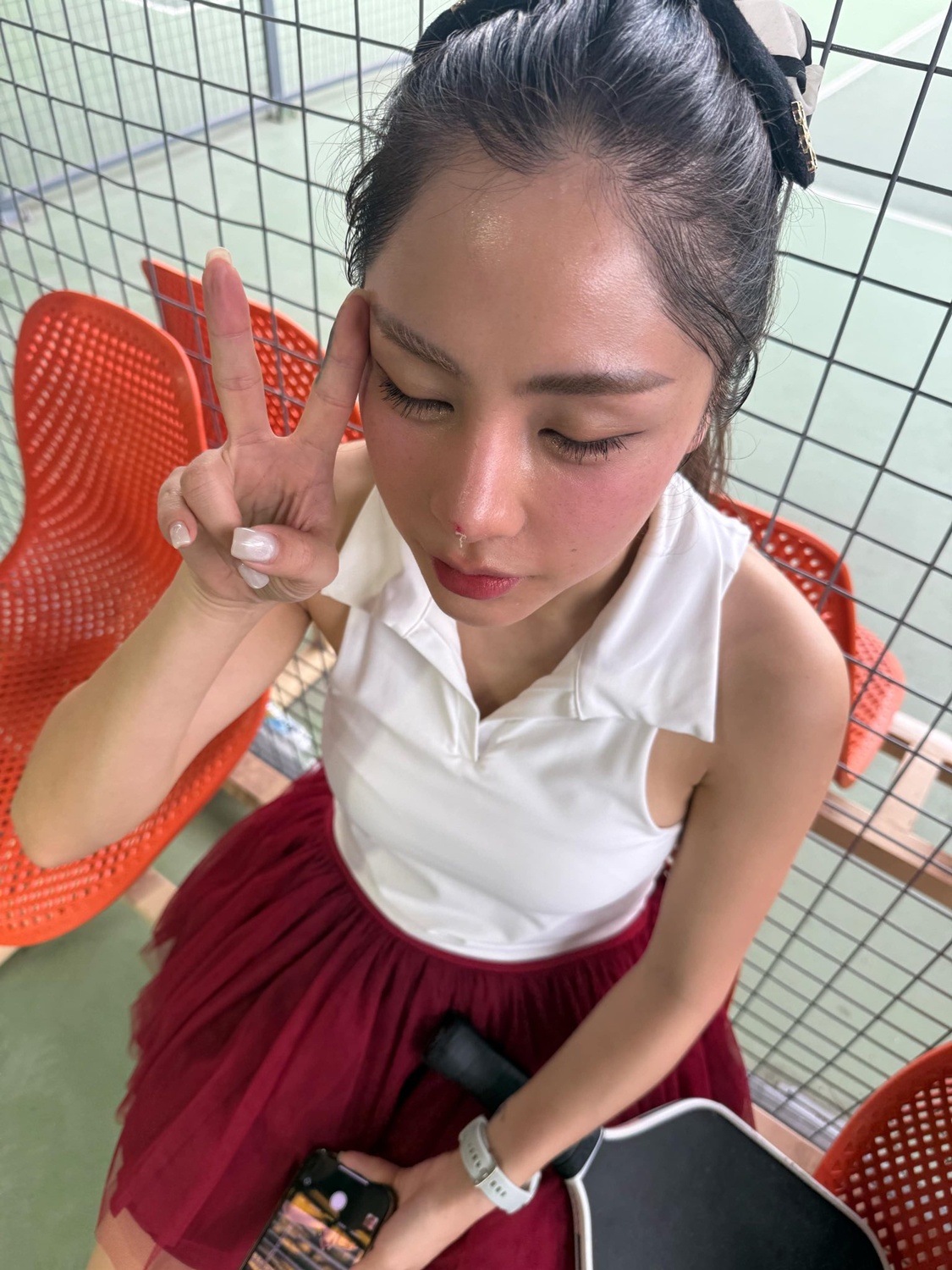 Trước đó, Bạch Lan Phương cũng chia sẻ bị xước mũi do chơi thể thao