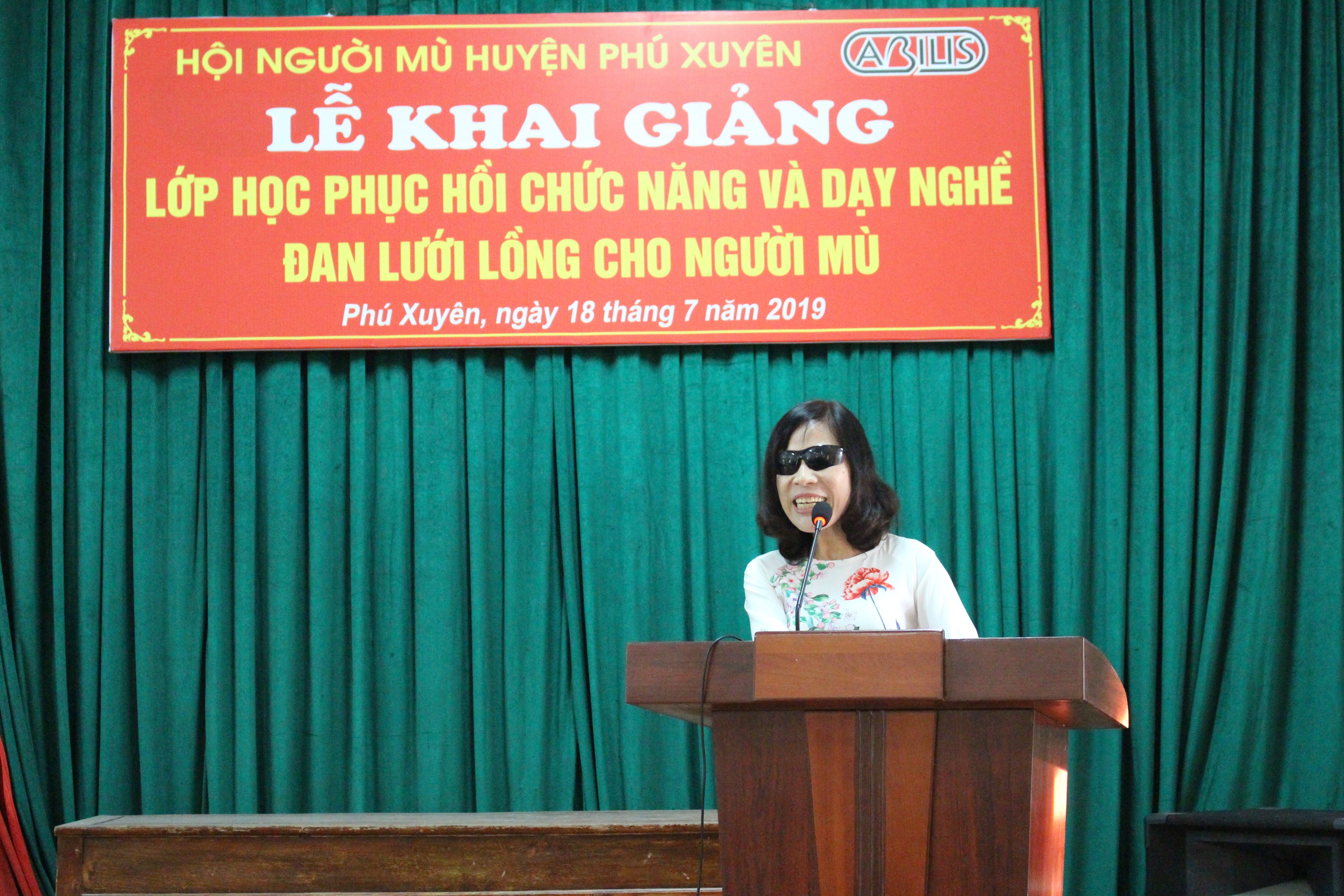 Phát biểu tại lễ khai giảng, bà Trần Việt Anh – Chủ tịch Hội người mù huyện Phú Xuyên nhấn mạnh: “Hội người mù Phú Xuyên luôn quan tâm đến đời sống tinh thần và vật chất, đặc biệt là công tác tạo việc làm cho hội viên, bởi lẽ việc làm là nhu cầu chính đáng, bức thiết của người khuyết tật nói chung, người khiếm thị nói riêng. Người khiếm thị có việc làm sẽ giảm sự lệ thuộc vào gia đình và xã hội, tự tin thực hiện quyền bình đẳng với cộng đồng”.