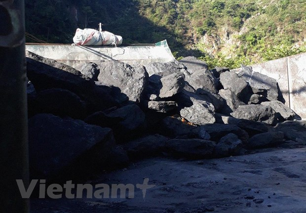 Than cục tại các điểm tập kết xung quanh Mỏ than Khánh Hòa được bán với giá từ 1,6-1,8 triệu đồng/tấn, tùy số lượng khách hàng mua. (Ảnh: H.V/Vietnam+)