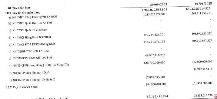 Trong kỳ, doanh thu tài chính giảm 43,3% so với cùng kỳ, còn 5,87 tỷ đồng. Loạt chi phí được tiết giảm như: chi phí tài chính giảm 22,6% còn 37 tỷ đồng; chi phí bán hàng và quản lý doanh nghiệp giảm 12,3%, còn 46,34 tỷ đồng. Tuy nhiên, doanh nghiệp vẫn báo lỗ sau thuế 77,83 tỷ đồng trong quý III/2025.