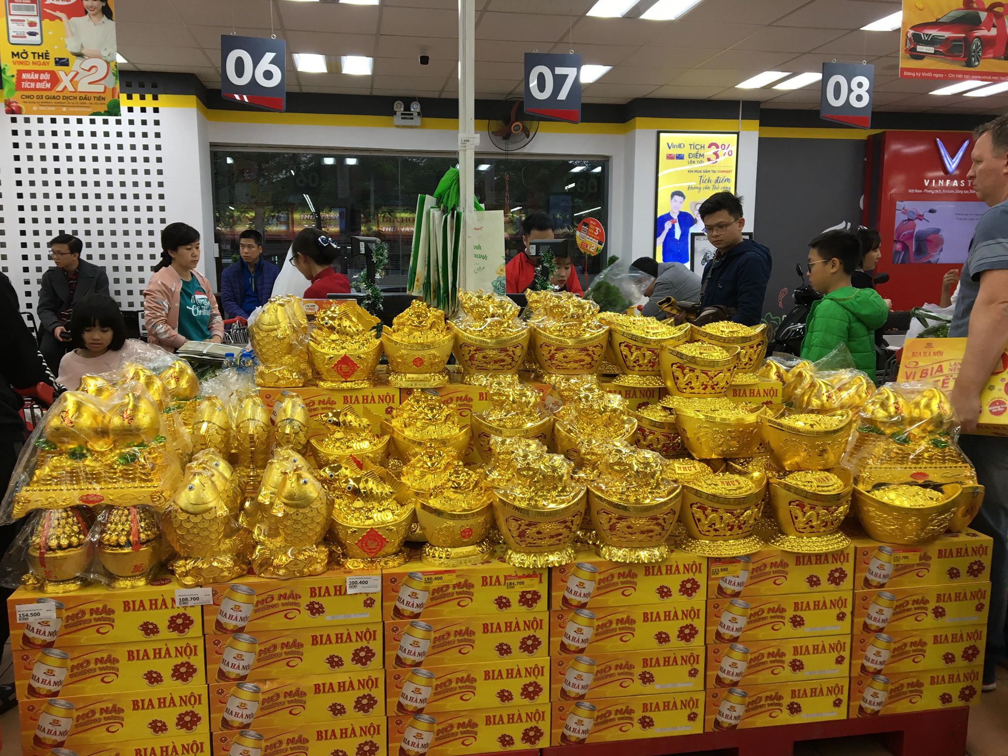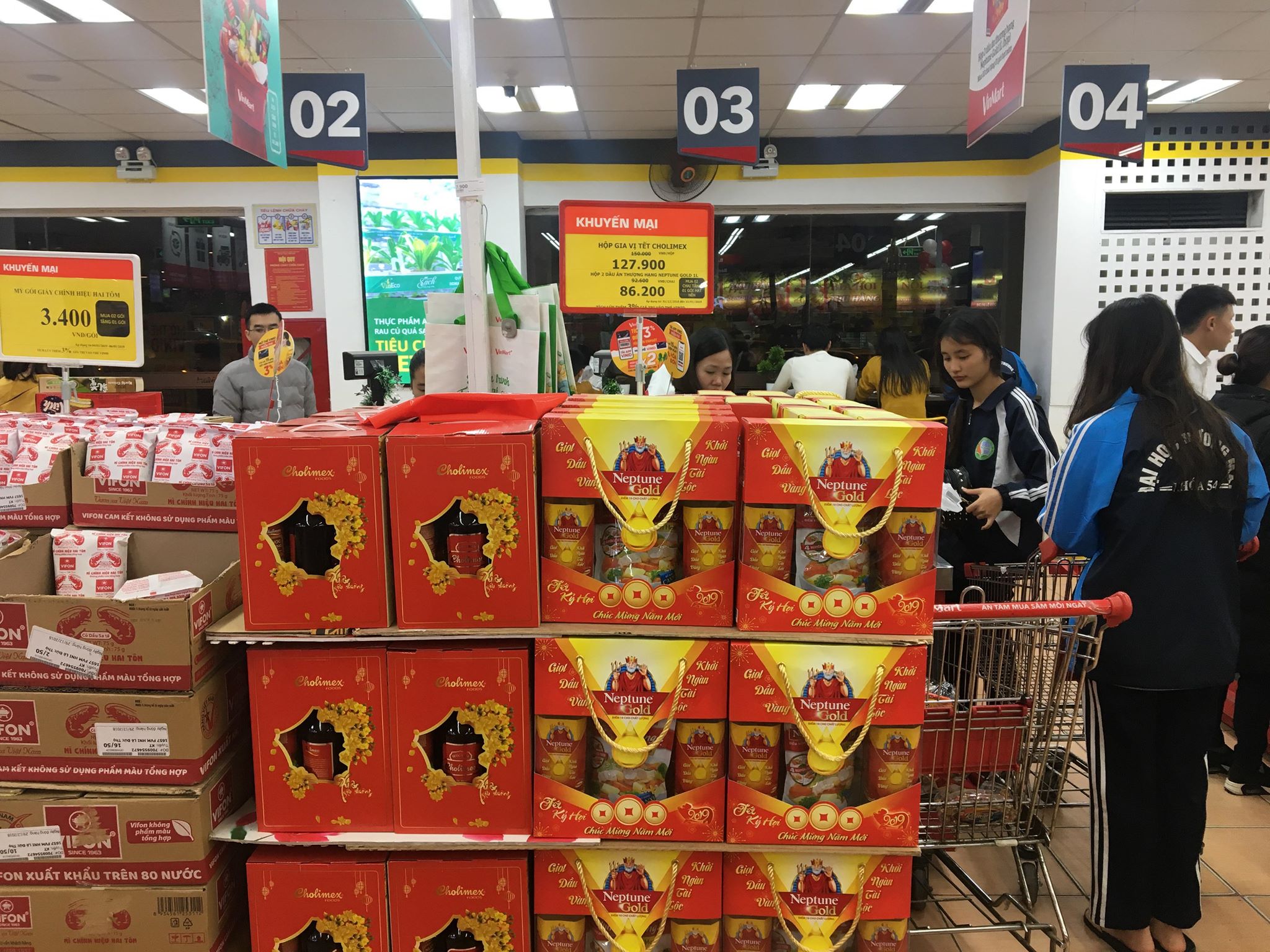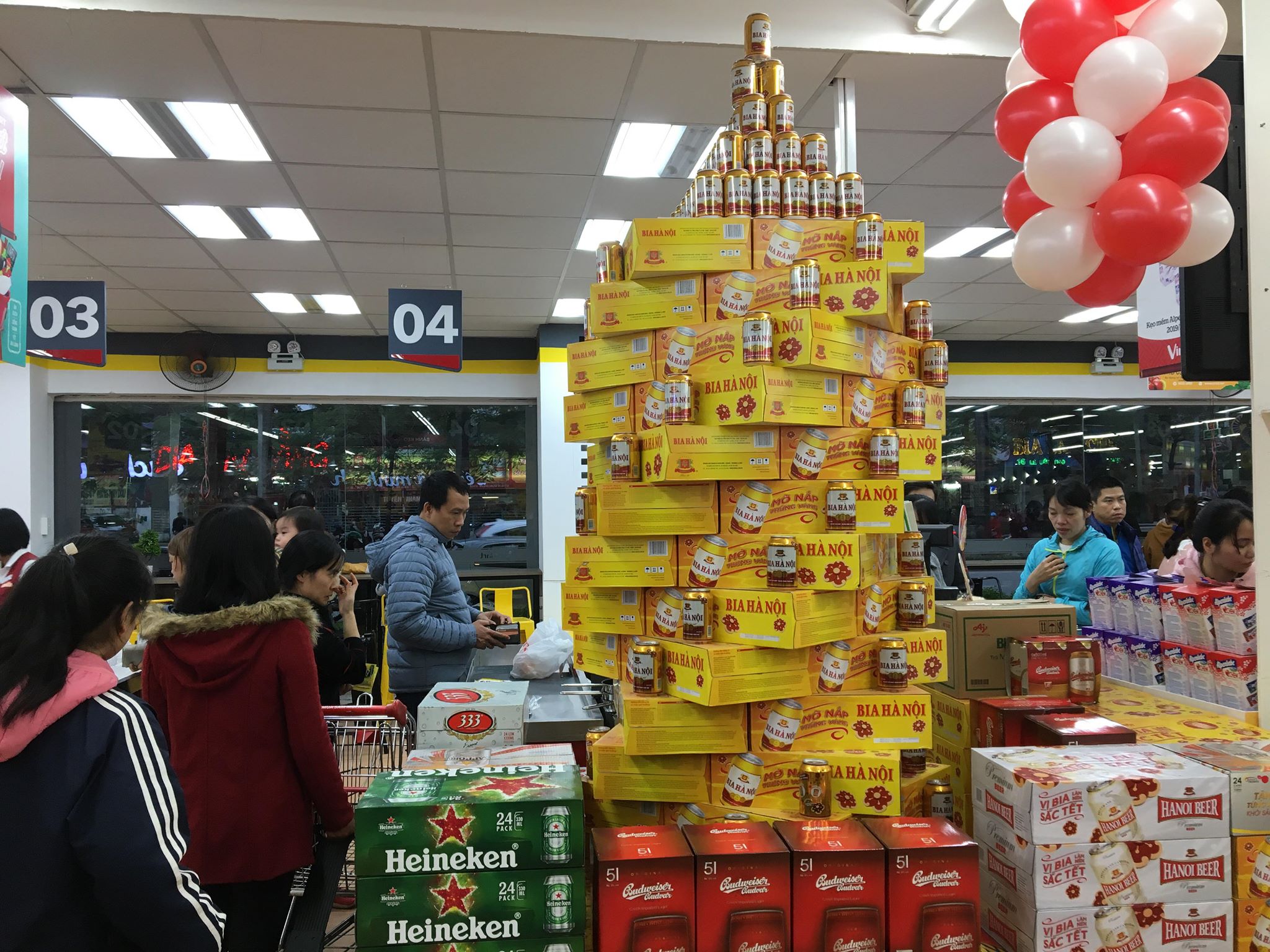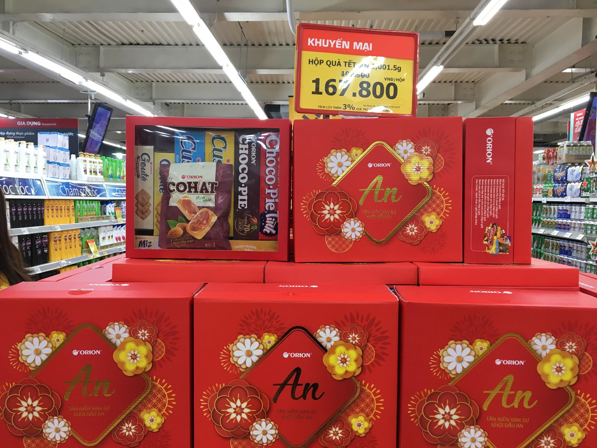 Theo ghi nhận của PV, dạo quanh một vòng tại các siêu thị khu vực Hà Nội như Vinmart, Big C, Coop Mart,... các siêu thị đã trưng bày nhiều hơn các sản phẩm phục vụTết Nguyên đán Kỷ Hợi 2019.