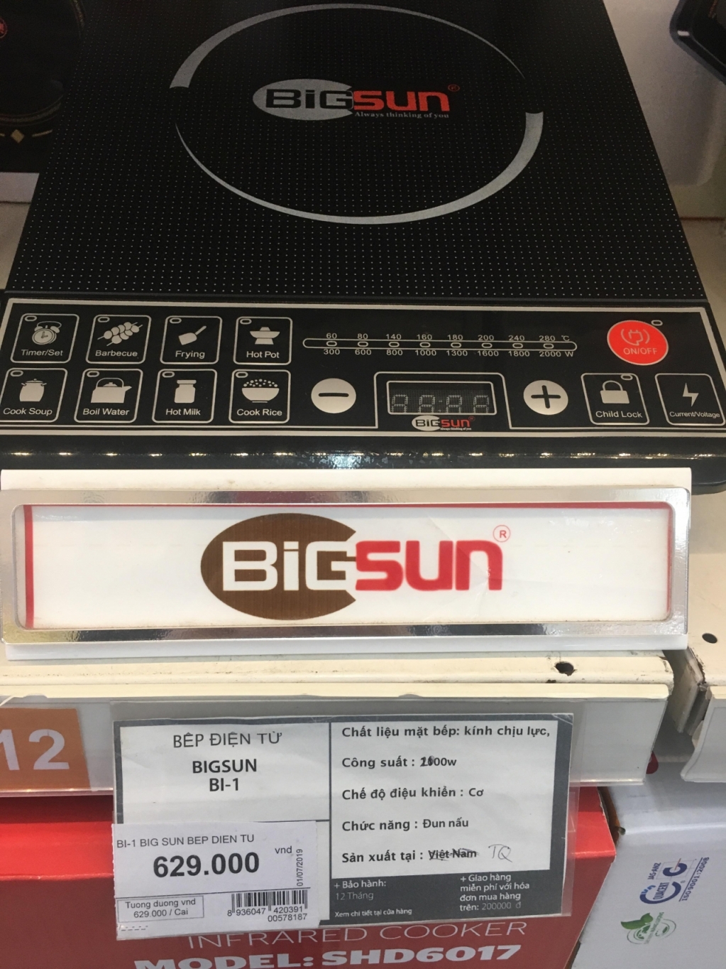 Duy nhất có một chiếc bếp hiệu Bigsun có xuất xứ Việt Nam nhưng là do siêu thị "ghi nhầm". Sản phẩm này được sửa lại bằng bút bi bên cạnh là xuất xứ Trung Quốc.