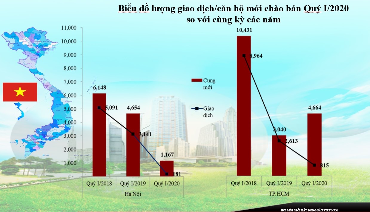 Hội Môi giới BĐS Việt Nam nhận định, tình hình thị trường BĐS quý I.2020 vô cùng trầm lắng so với cùng kỳ hàng năm. Lượng cung, giao dịch, tỷ lệ hấp thụ ở mức thấp nhất trong vòng 4 năm qua.