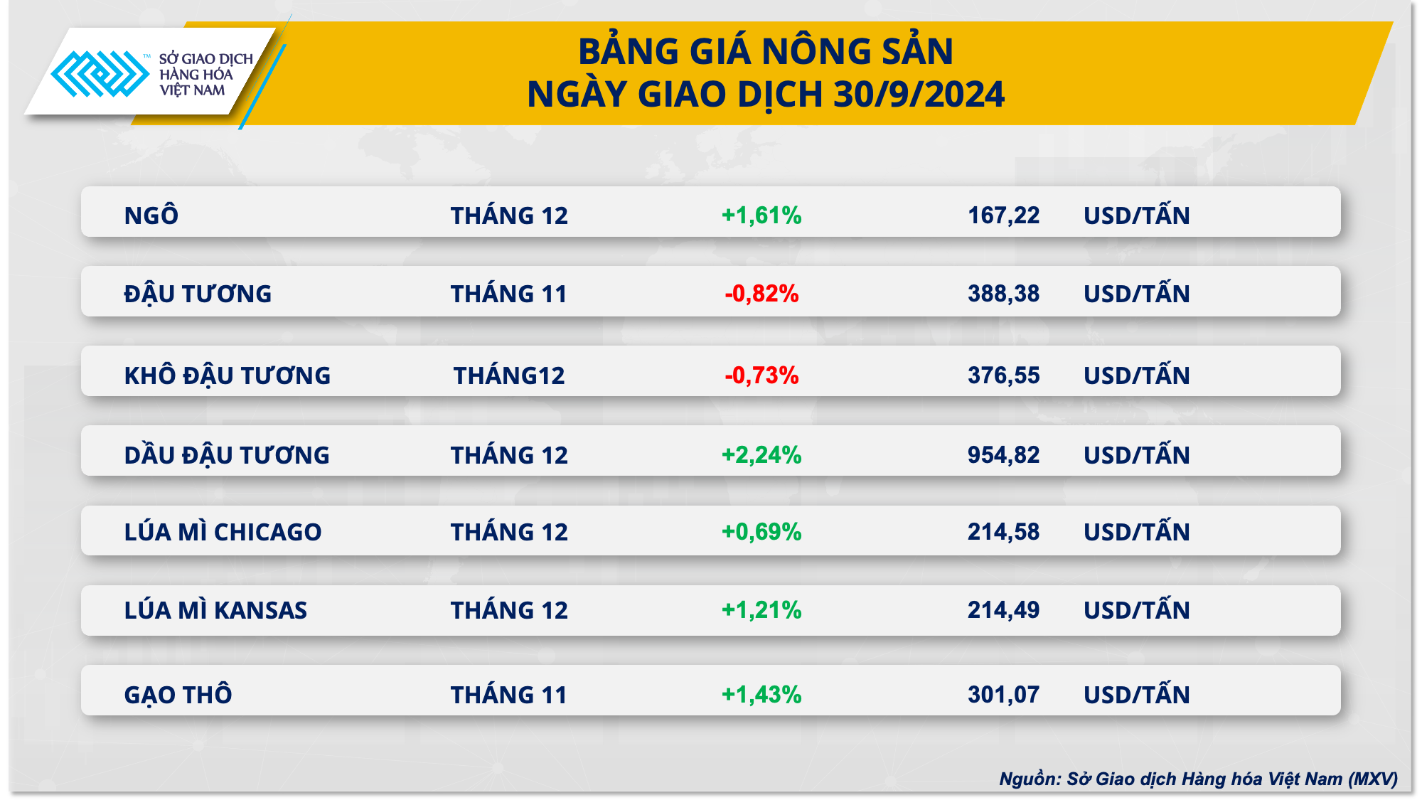 Bên cạnh đó, trong báo cáo Export Inspections, USDA cho biết giao hàng ngô trong tuần kết thúc ngày 26/9 đạt mức 1,14 triệu tấn, gần như không thay đổi so với tuần trước đó nhưng tăng gần gấp đôi so với cùng kỳ năm ngoái. Phần lớn ngô bán cho các khách hàng truyền thống của Mỹ như: Mexico, Colombia và Nhật Bản. Chưa đầy một tháng trong niên vụ 2024-2025, tổng lượng ngô xuất khẩu của Mỹ đã đạt 3,33 triệu tấn, tăng so với 2,69 triệu tấn của năm ngoái. Điều này mang đến triển vọng xuất khẩu tích cực, khiến giá được hỗ trợ.