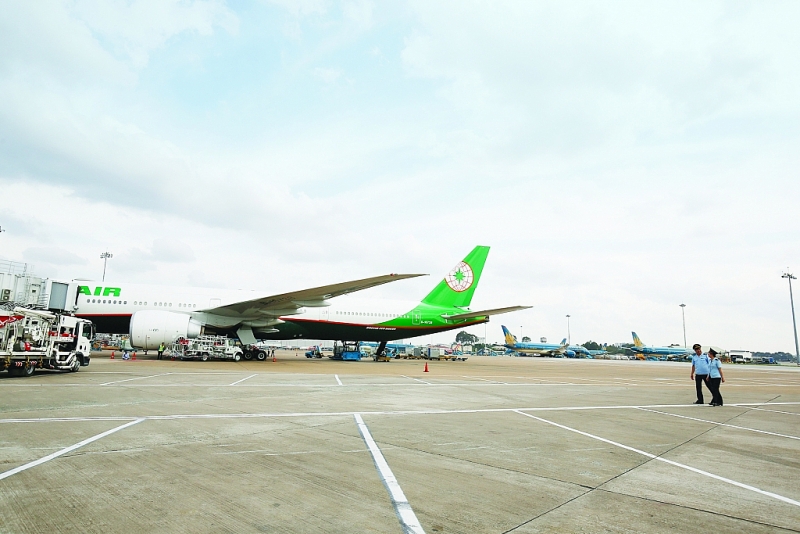 Sân bay Tân Sơn Nhất hiện đang trong tình trạng quá tải. Trong ảnh: Công chức Chi cục hải quan sân bay Tân Sơn Nhất thực hiện nhiệm vụ giám sát sân đỗ Ảnh: Huy Khâm