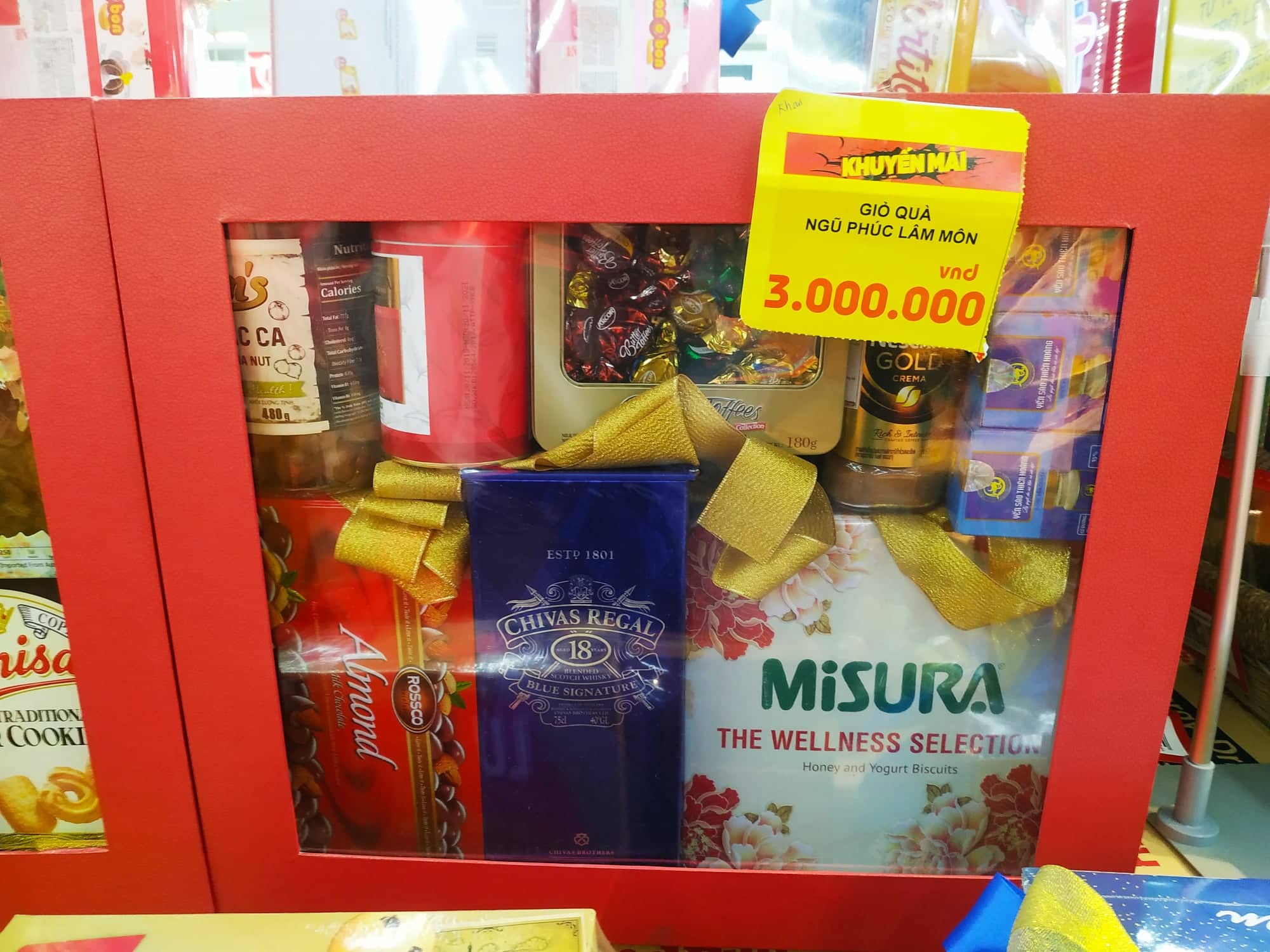 Hộp quà có giá 3 triệu đồng bao gồm nhiều loại thực phẩm nhập ngoại