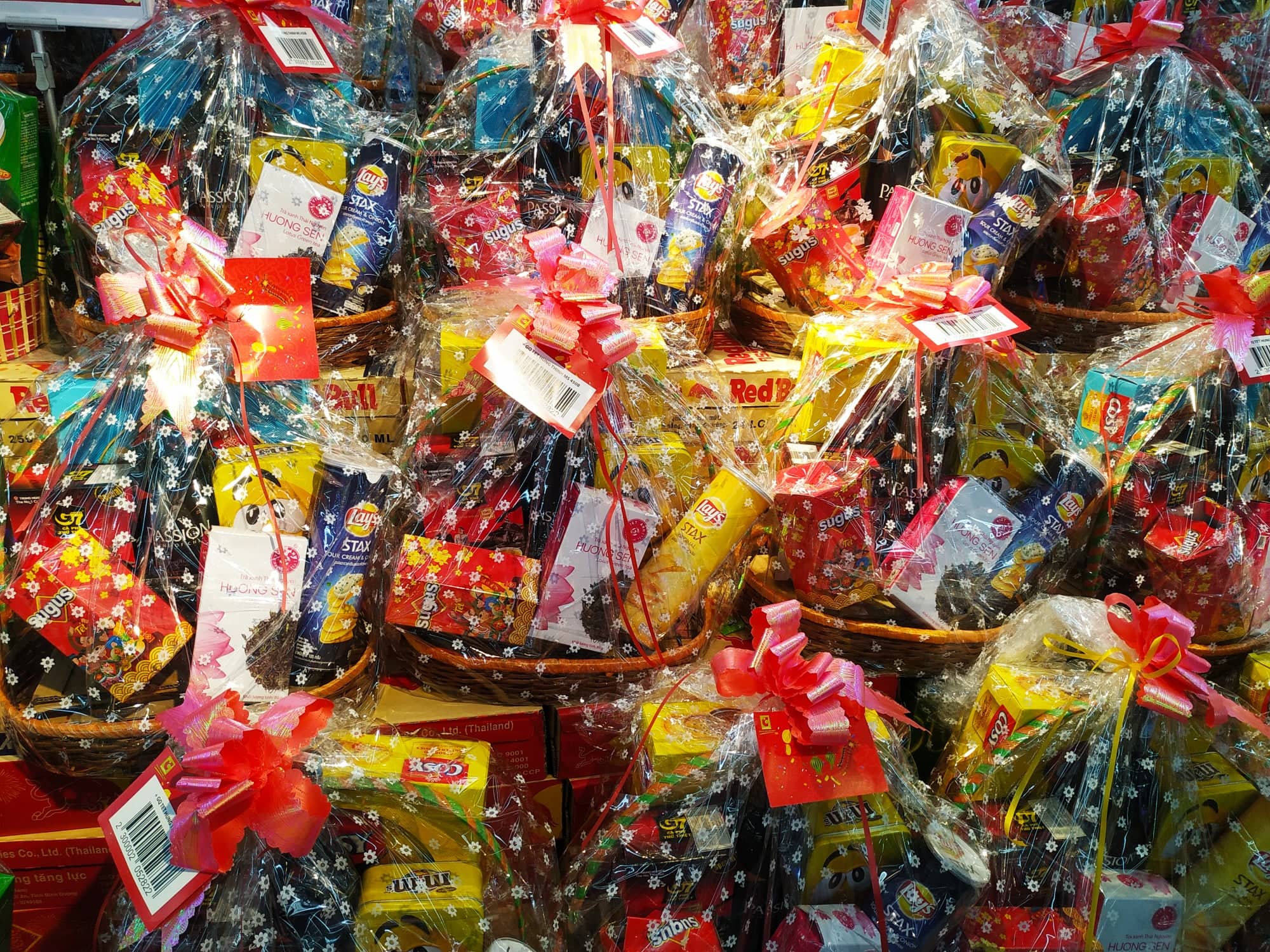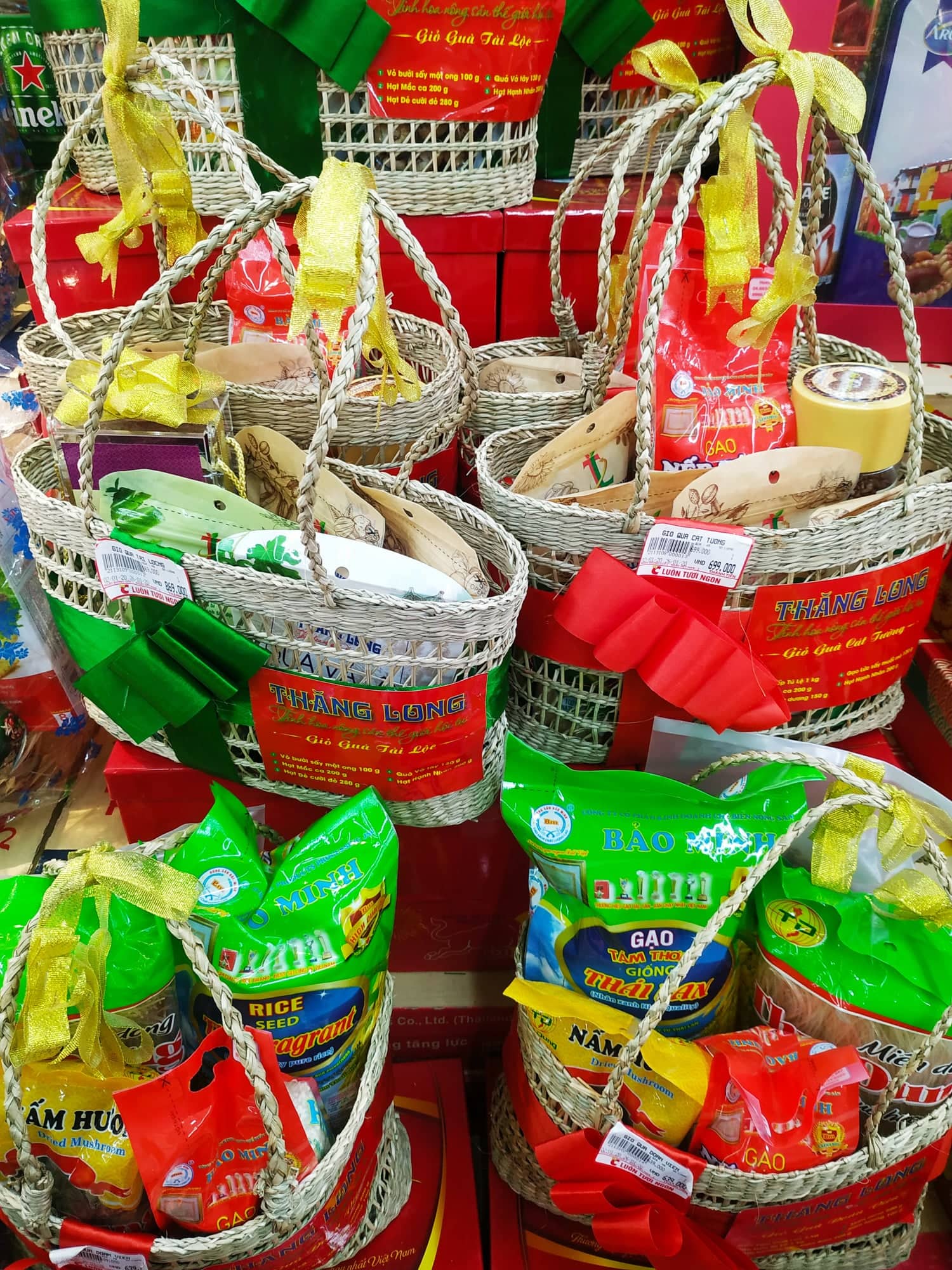 Mọi năm, do không có nhiều thời gian để chọn quà biếu, nên đa số người dân lựa chọn các phần quà Tết gói sẵn. Giỏ quà Tết gói sẵn thường có rượu, bánh kẹo, trà, cà phê… Tùy theo số tiền mà số lượng cũng như chất lượng sản phẩm sẽ khác nhau. Thông thường, giá bán sẽ dao động từ vài trăm cho đến vài triệu đồng, đủ các thương hiệu trong và ngoài nước.