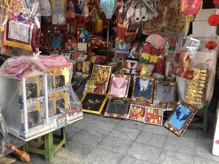 Một tiểu thương tại chợ Hoàng Văn Thái (Thanh Xuân) cho biết, về giá cả sản phẩm vàng mã, khoảng 2 năm trở lại đây, do giá nguyên vật liệu nhập vào đắt đỏ nên giá các mặt hàng cũng sẽ tăng thêm từ 10-20% so với năm ngoái. Ngựa giấy giá dao động từ 35.000 - 500.000 đồng/con, tùy kích cỡ. Các mặt hàng như quần áo, giày dép, mũ nón có giá dao động từ 40.000- 50.000 đồng/bộ.