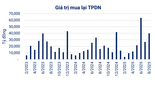 Ở chiều ngược lại, các doanh nghiệp đã chi tới 27.032 tỷ đồng để mua lại trái phiếu trước hạn trong tháng 8, tăng tới 70% so với cùng kỳ năm 2024. Động thái này cho thấy nhu cầu giảm áp lực nợ vay của nhiều doanh nghiệp, đồng thời góp phần cải thiện niềm tin của nhà đầu tư vào khả năng thanh toán.