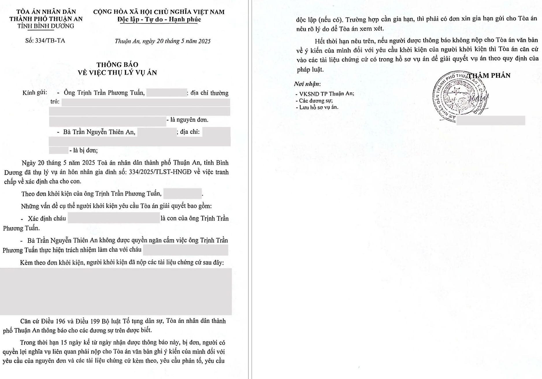 Theo nội dung được công bố, Tòa án nhân dân thành phố Thuận An, tỉnh Bình Dương đã chính thức tiếp nhận và thụ lý đơn kiện của Jack vào ngày 20/5/2025.