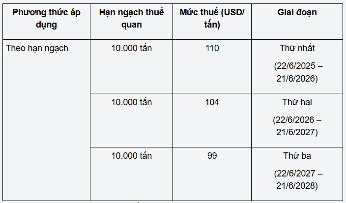 Mức thuế trên sẽ có hiệu lực từ kể ngày 22 tháng 06 năm 2025.