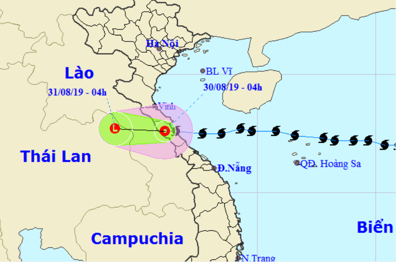 Trong 12 giờ tới, áp thấp nhiệt đới di chuyển theo hướng Tây, mỗi giờ đi được 20km, đi sâu vào đất liền và suy yếu thành áp một vùng áp thấp. Đến 16 giờ ngày 30/8, vị trí trung tâm vùng áp thấp ở khoảng 17,7 độ Vĩ Bắc; 104,0 độ Kinh Đông, trên khu vực biên giới Lào-Thái Lan. Sức gió mạnh nhất gần trung tâm vùng áp thấp giảm xuống dưới cấp 6 (dưới 40km/giờ).