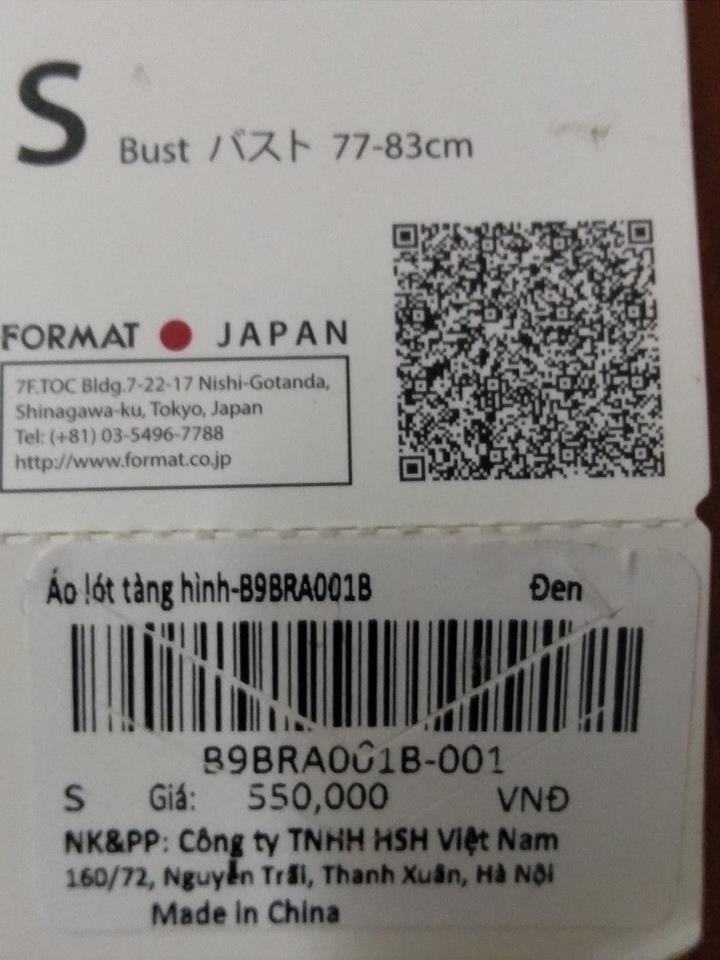 Điển hình như dòng sản phẩm "áo lót tàng hình-B9BRA001B" được bán tại showroom Format do Công ty TNHH HSH Việt Nam, địa chỉ số 160 ngõ 72 đường Nguyễn Trãi, quận Thanh Xuân, TP. Hà Nội) nhập khẩu và phân phối có nhãn chính ghi: Format Japan, địa chỉ tại Tokyo, Nhật Bản, miền format.co.jp nhưng nhãn phụ lại ghi có xuất xứ Trung Quốc.