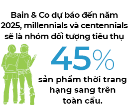Bain & Co dự báo đến năm 2025, millennials và centennials sẽ là nhóm đối tượng tiêu thụ 45% sản phẩm thời trang hạng sang trên toàn cầu. Trang phục công sở là điều cần thiết với họ nhưng tính cách tự chủ, phong cách thời trang khác với thế hệ trước như phong cách phi giới tính và cách sống dám thử những điều mới lạ sẽ đặt ra thử thách lớn cho những nhãn hiệu cổ điển, truyền thống và mô hình mua sắm cũ.