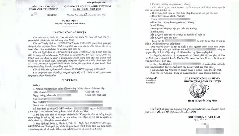 Nhận được thông tin, Công an TP Hà Nội đã khẩn trương phối hợp với Công an Huyện Thường Tín tiến hành điều tra và xác minh. Sau khi làm việc với các bên liên quan và thu thập đầy đủ bằng chứng, cơ quan chức năng đã kết luận bà H.T.T.H vi phạm quy định tại Điểm a, Khoản 1, Điều 101, Nghị định 15/2020/NĐ-CP. Quy định về hành vi “Cung cấp, chia sẻ thông tin giả mạo, thông tin sai sự thật, xuyên tạc, vu khống, xúc phạm uy tín của cơ quan, tổ chức, danh dự, nhân phẩm của cá nhân”.