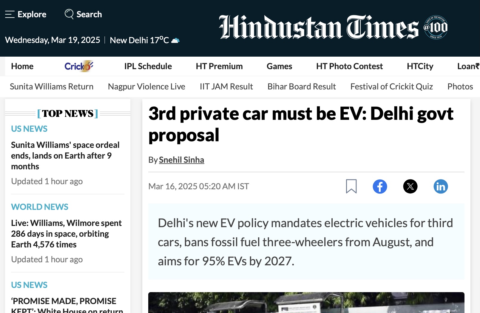 Một chính sách quyết liệt là điều cần thiết, tờ Hindustan Times nhấn mạnh, phương tiện sử dụng động cơ đốt trong đang là một trong những nguồn gây ô nhiễm chính ở Delhi.
