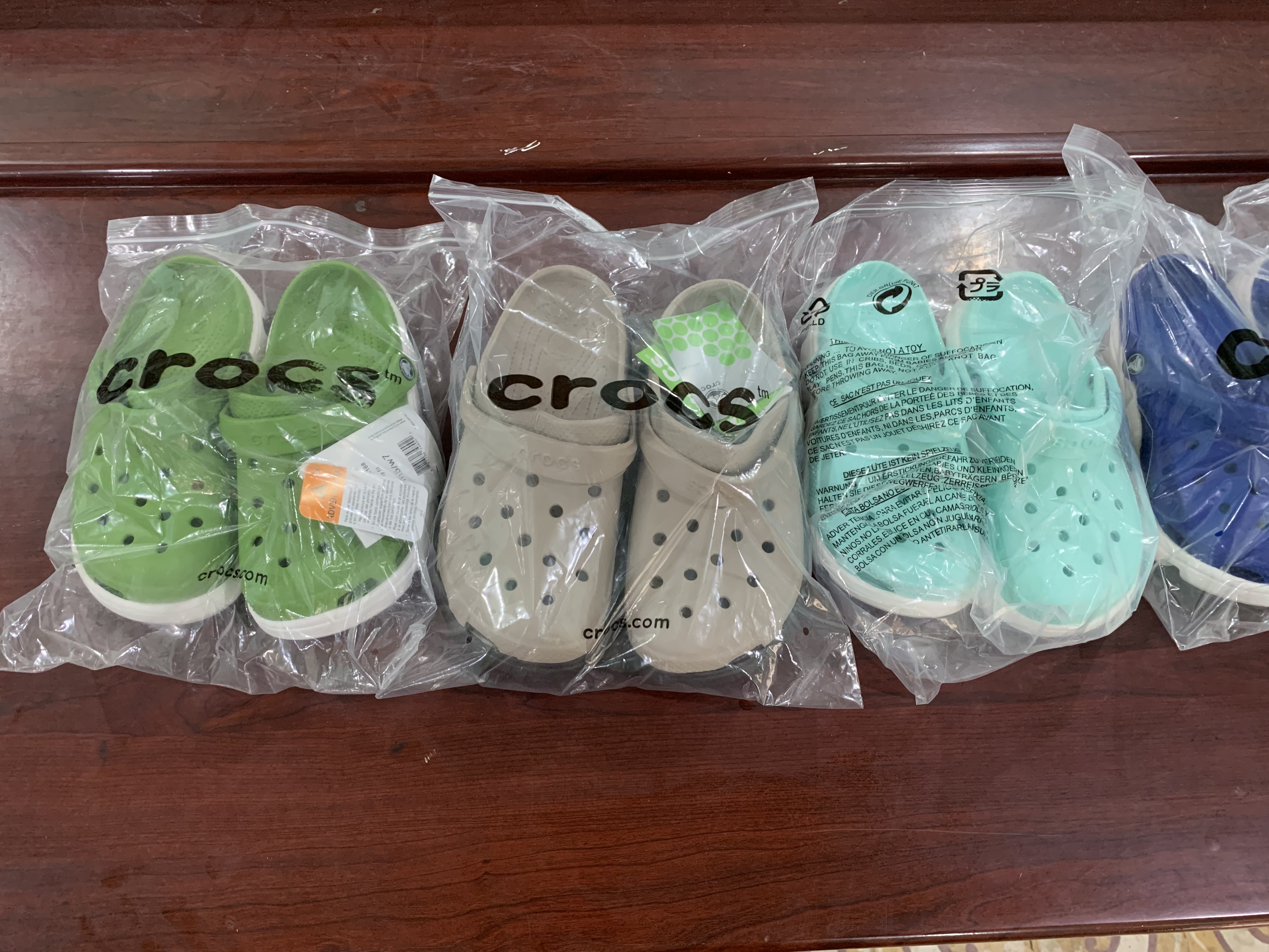 Mặt hàng Dép xốp Crocs sản xuất do Trung Quốc sản xuất trên đế dép có in dập nổi Made in Vietnam. |
