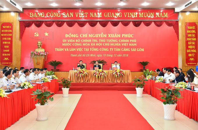 Chiều 19/12, trong chuyến công tác tại TP Hồ Chí Minh, nhân dịp kỷ niệm Ngày thành lập Quân đội nhân dân Việt Nam (22/12), Thủ tướng Nguyễn Xuân Phúc và đoàn công tác Chính phủ tới thăm, làm việc với Tổng Công ty Tân Cảng Sản Gòn, một doanh nghiệp đã kết hợp tốt nhiệm vụ kinh tế và quốc phòng.