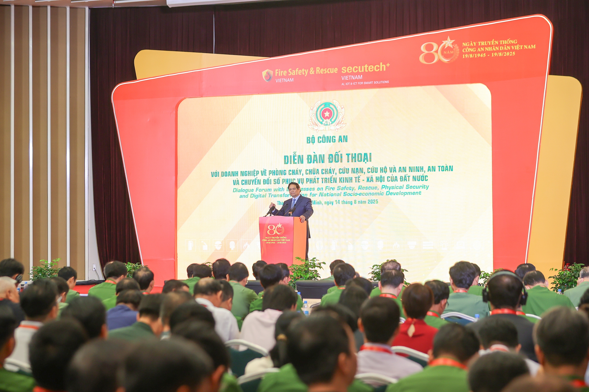 Sáng 14/8, tại TPHCM, Thủ tướng Phạm Minh Chính dự Diễn đàn đối thoại với doanh nghiệp về phòng cháy, chữa cháy và cứu nạn, cứu hộ, an ninh, an toàn và chuyển đổi số phục vụ phát triển kinh tế-xã hội của đất nước và lễ khai mạc Triển lãm quốc tế "Về kỹ thuật, phương tiện phòng cháy, chữa cháy, cứu nạn, cứu hộ và thiết bị an ninh, an toàn, bảo vệ" năm 2025.