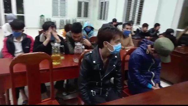 Công an huyện Phú Vang đã tiến hành lập biên bản vi phạm hành chính đối với chủ quán karaoke về hành vi "hoạt động karaoke quá giờ được phép" cùng 16 trường hợp trên về hành vi "sử dụng trái phép chất ma túy".