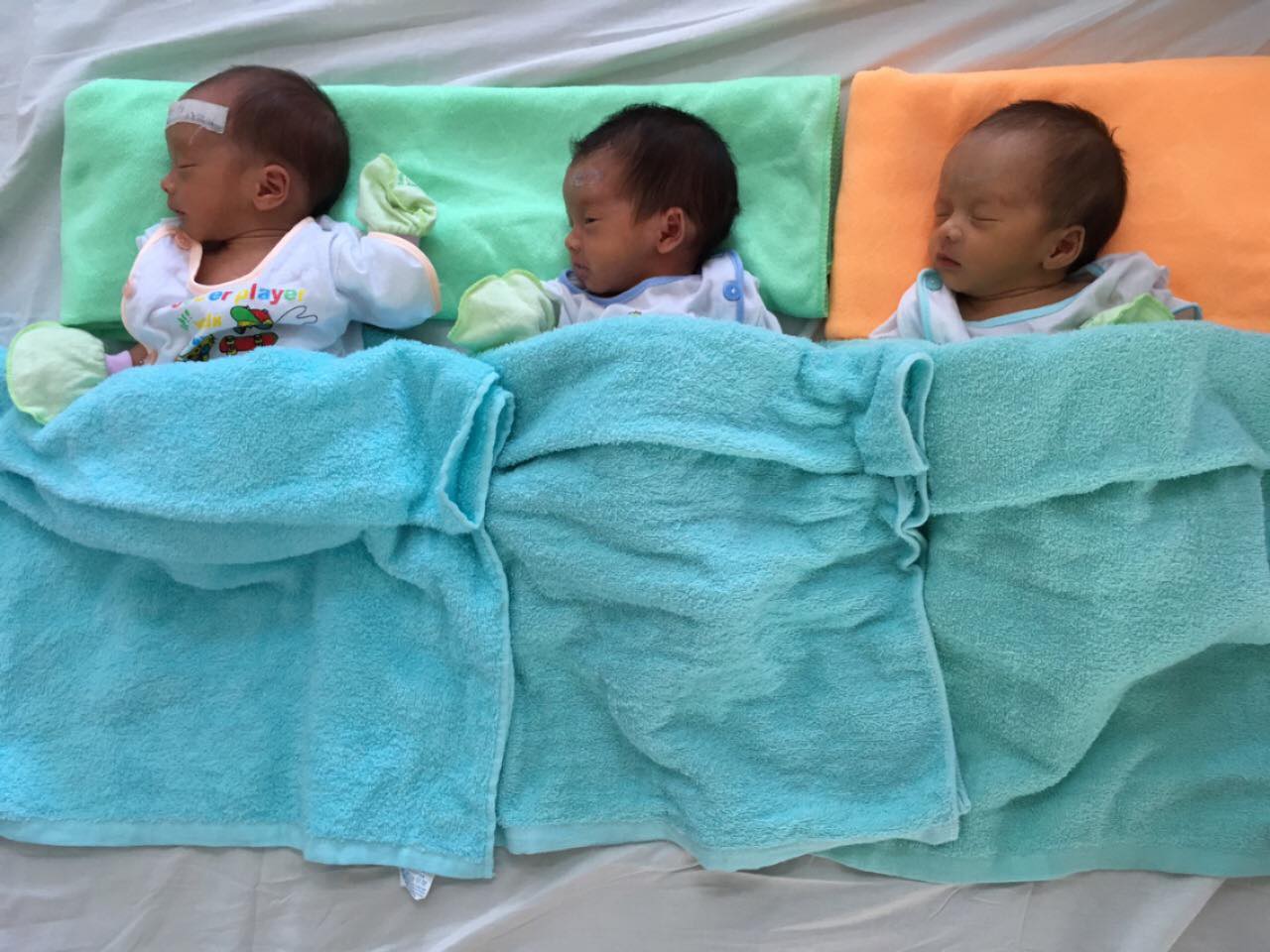Sau khi hạ sinh, các bé có dấu hiệu bị suy hô hấp, chẩn đoán nhiễm trùng sơ sinh do tam thai đẻ non nên đã được tiếp tục theo dõi điều trị. Sau nửa tháng điều trị, tình hình sức khỏe của các cháu đã chuyển biến tích cực, bắt đầu bú sữa mẹ, đến sáng nay thì xuất viện.