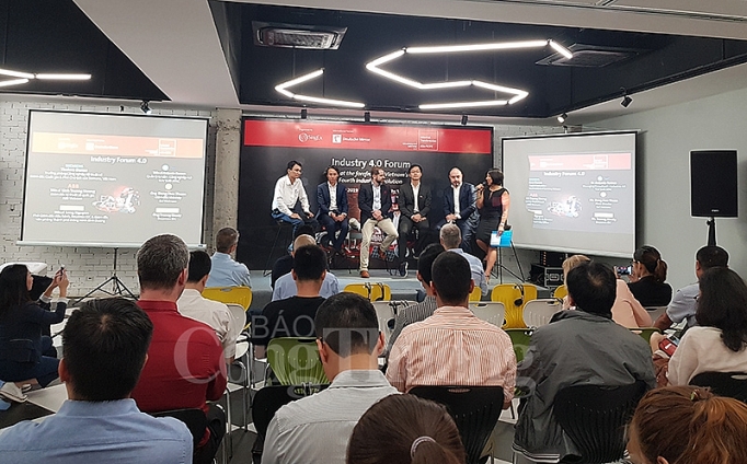 Các diễn giả chia sẻ về khả năng thích ứng  I4.0 với doanh nghiệp việt. Ảnh: Báo Công Thương