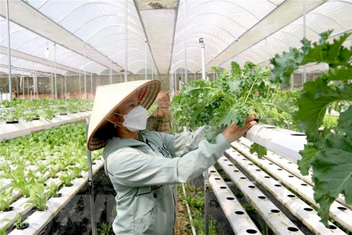 Mô hình trồng rau thủy canh thích ứng biến đổi khí hậu tại Hợp tác xã rau an toàn Tiến Phát, huyện Đức Linh, tỉnh Bình Thuận. (Ảnh: TTXVN)