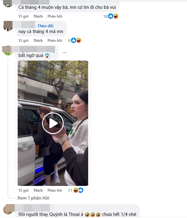 Tuy nhiên, dưới bài đăng nhiều người cho rằng, đây có thể chỉ là content "bà chúa drama" Hương Giang và Thúy Quỳnh dàn dựng để hút sự chú ý bởi lẽ status được chia sẻ vào đúng ngày Cá tháng 4.